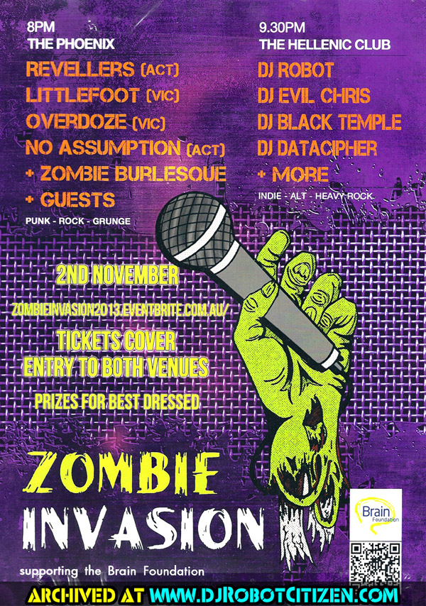 2013 November 2 Halloween "Zombie Invasion" @ City Hellenic Club with live bands @ The Phoenix.