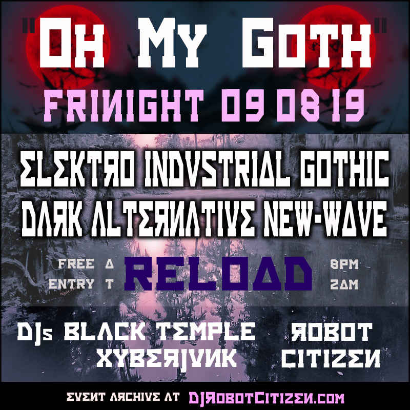 2019 August 09 - "Oh My Goth" #7. Venue: Reload bar, Canberra City. DJs Black Temple, Robot Citizen & XyberJunk ...