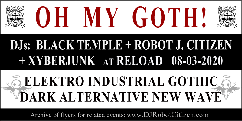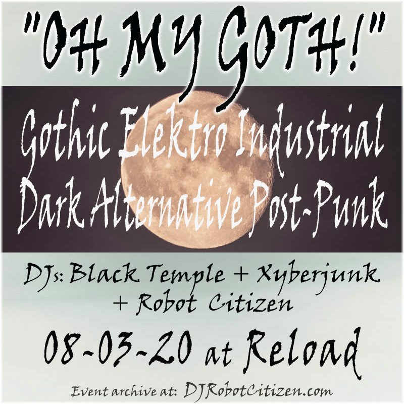 2020 March 08 - "Oh My Goth" #9. Venue: Reload bar, Canberra City. DJs Black Temple, Robot Citizen & XyberJunk ...